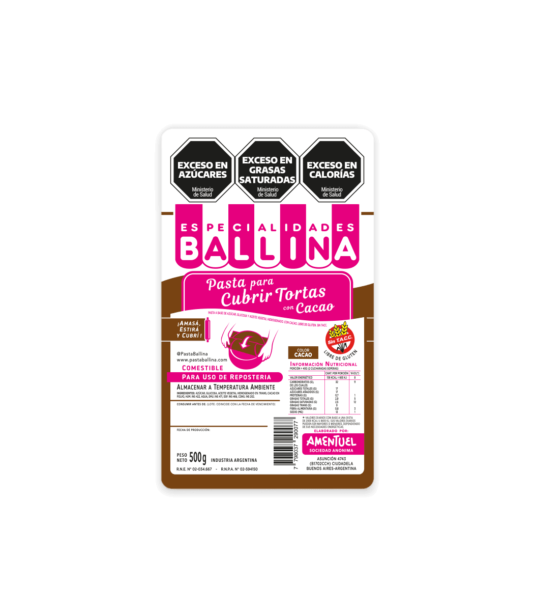 PASTA BALLINA C/ CACAO x 500grSinTacc