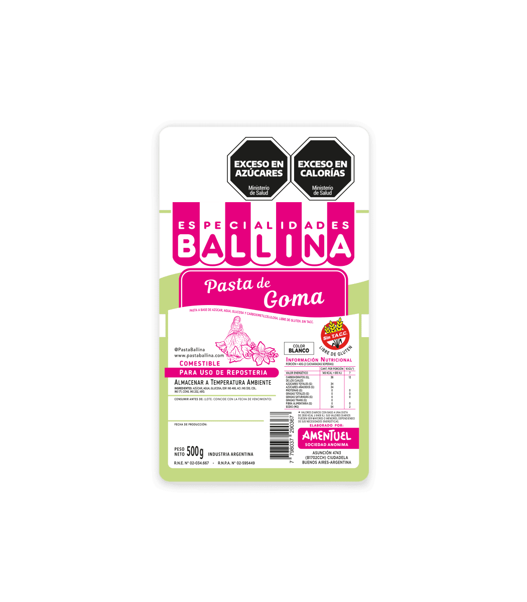 PASTA DE GOMA BALLINA SinTacc x500gr Blanca